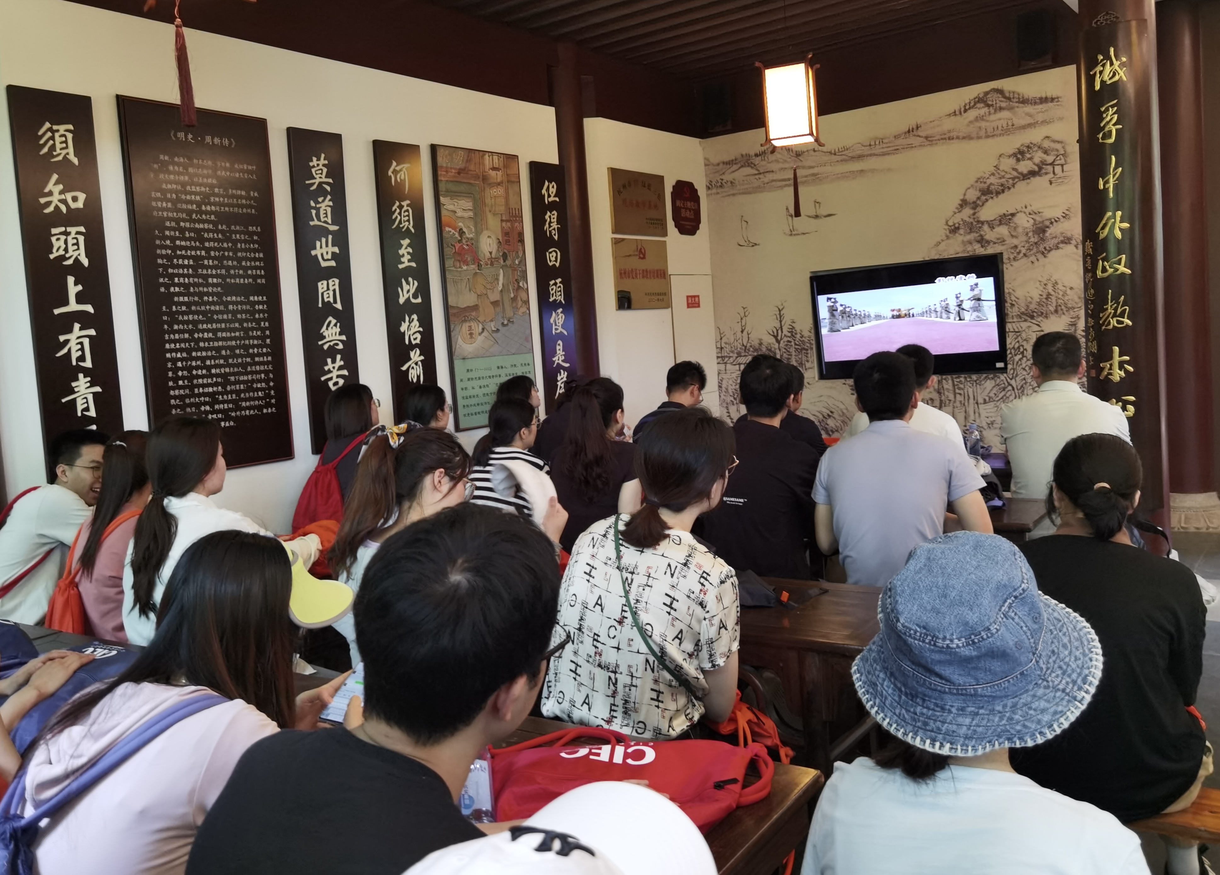在儀門廉政宣教廳,黨員們誦讀了梅摯所作警醒官員行為的《五瘴說》、參觀了周新祠塑像、觀看了《鐵面無私周新》的宣傳片,感受到了眾多歷史人物“清風兩袖朝天去,正氣一生為民忙”的氣概。